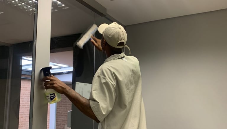 Limpeza de fachadas e janelas para valorizar seu ambiente de trabalho.